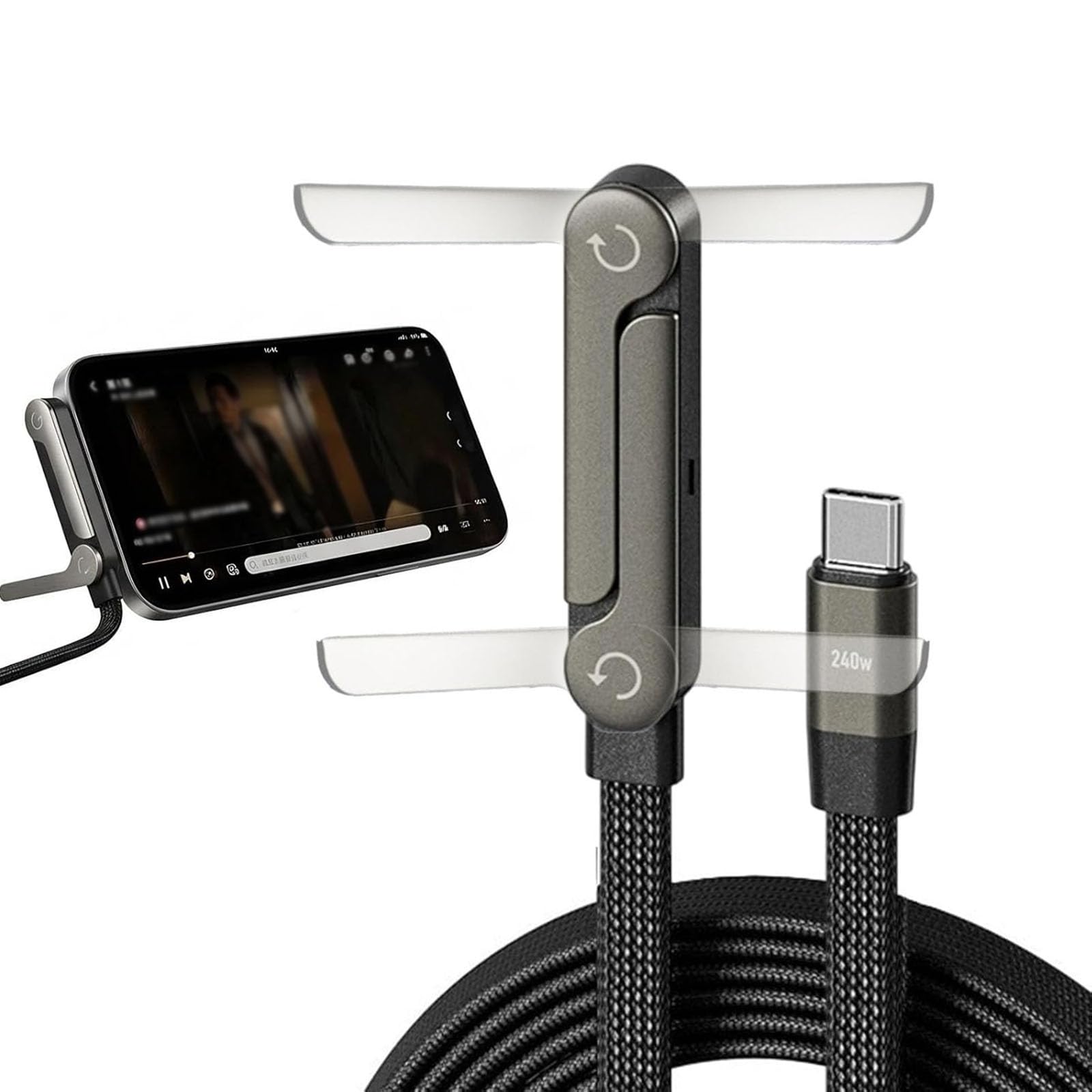 → Ugrađeni držač se rasklapa i podupire telefon dok ga USB-C kabl istovremeno puni ←